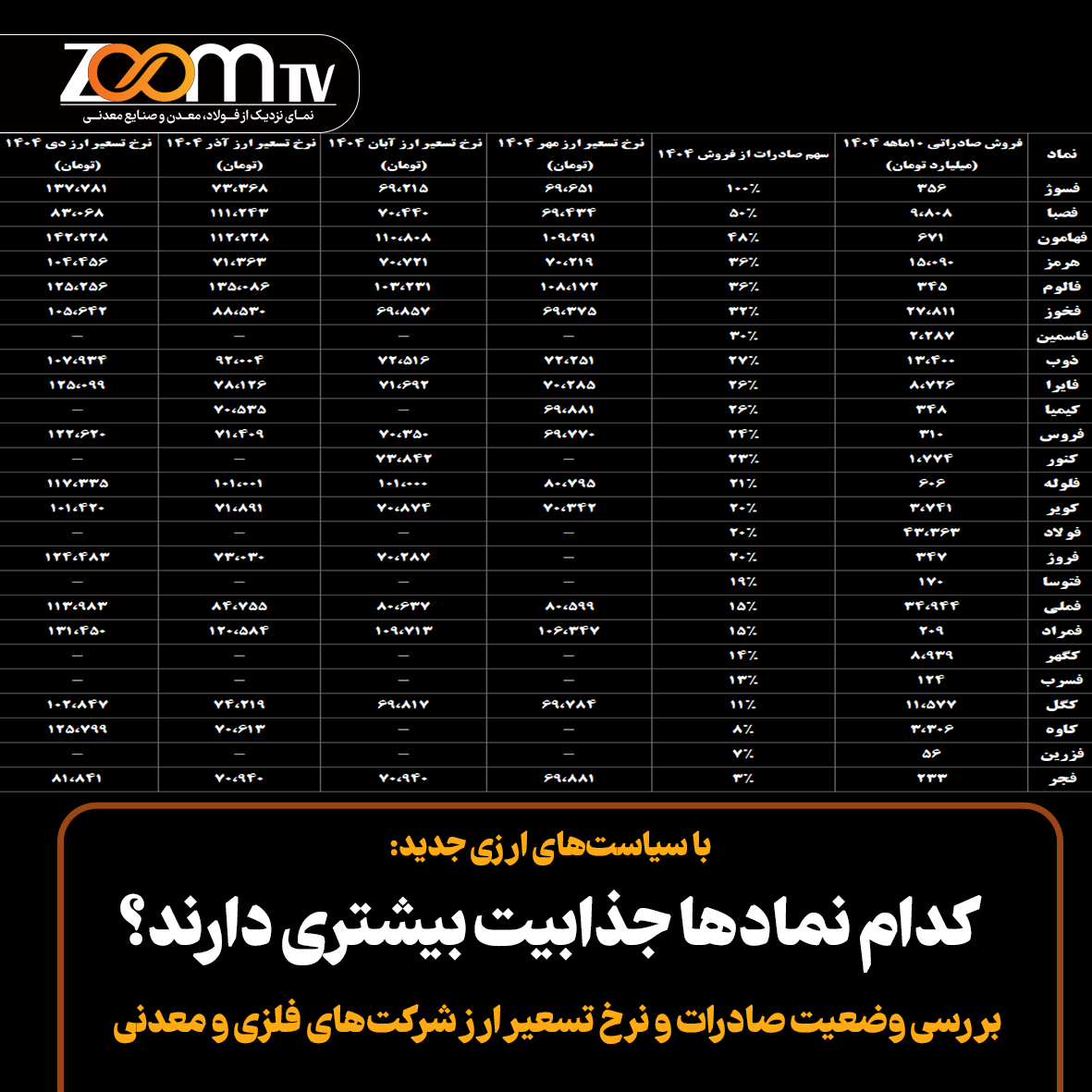 میزان صادرات و سهم صادرات از فروش شرکتهای فلزی و معدنی در 10ماهه سال جاری و نرخ تسعیر ارز این شرکتها از ابتدای پاییز بررسی شده است.